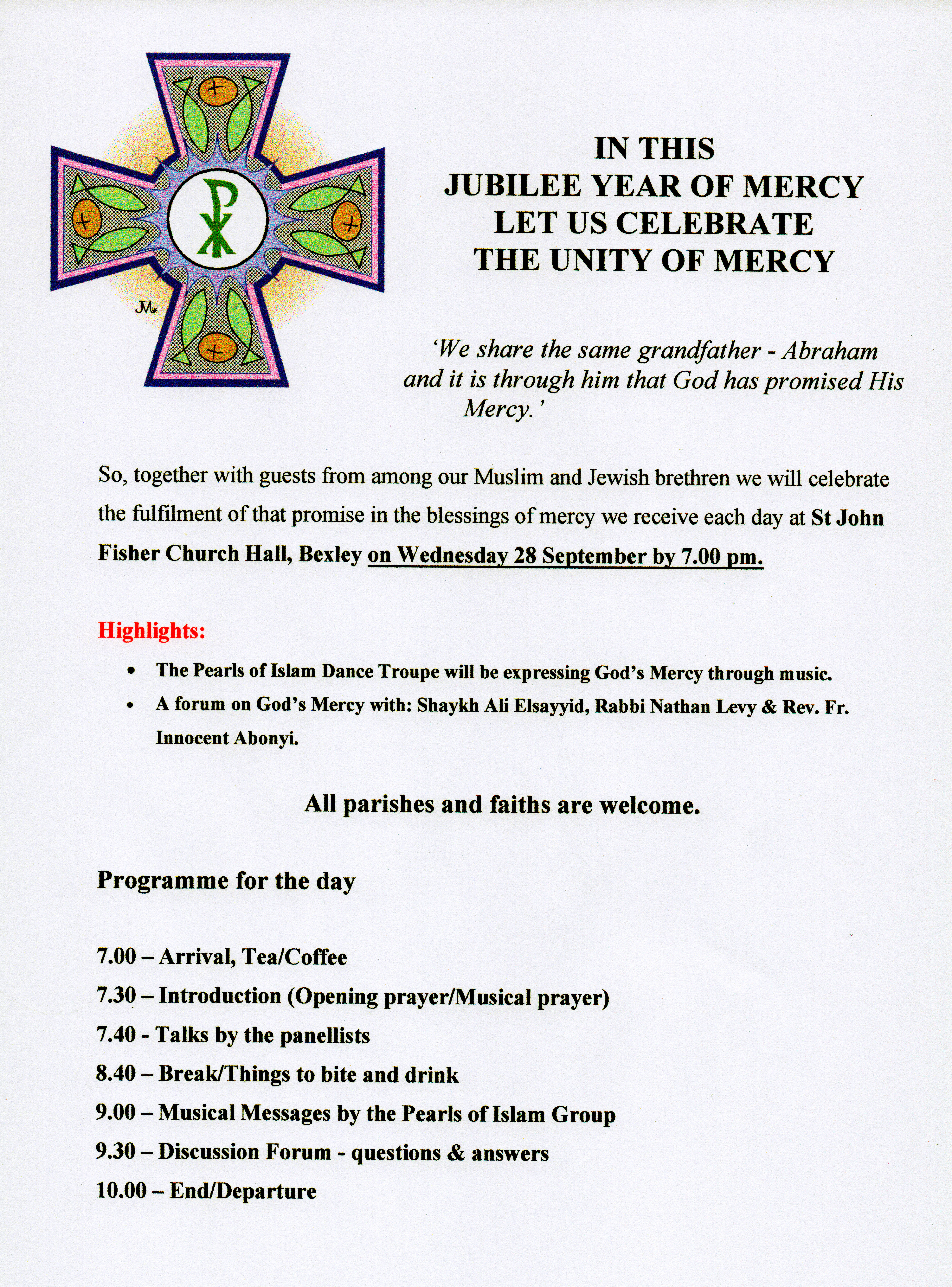 DATE FOR YOUR DIARY: Year of Mercy Event on Wednesday 28th September, 7pm for 7.30pm.