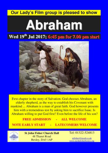 Our next film evening will be on Wed 19th July when we will show an inspiring movie on Abraham the Old Testament patriarch of great faith.