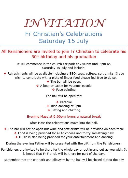 • Graduation/Birthday Celebration for the Parish by Fr Christian – 15 July 2017