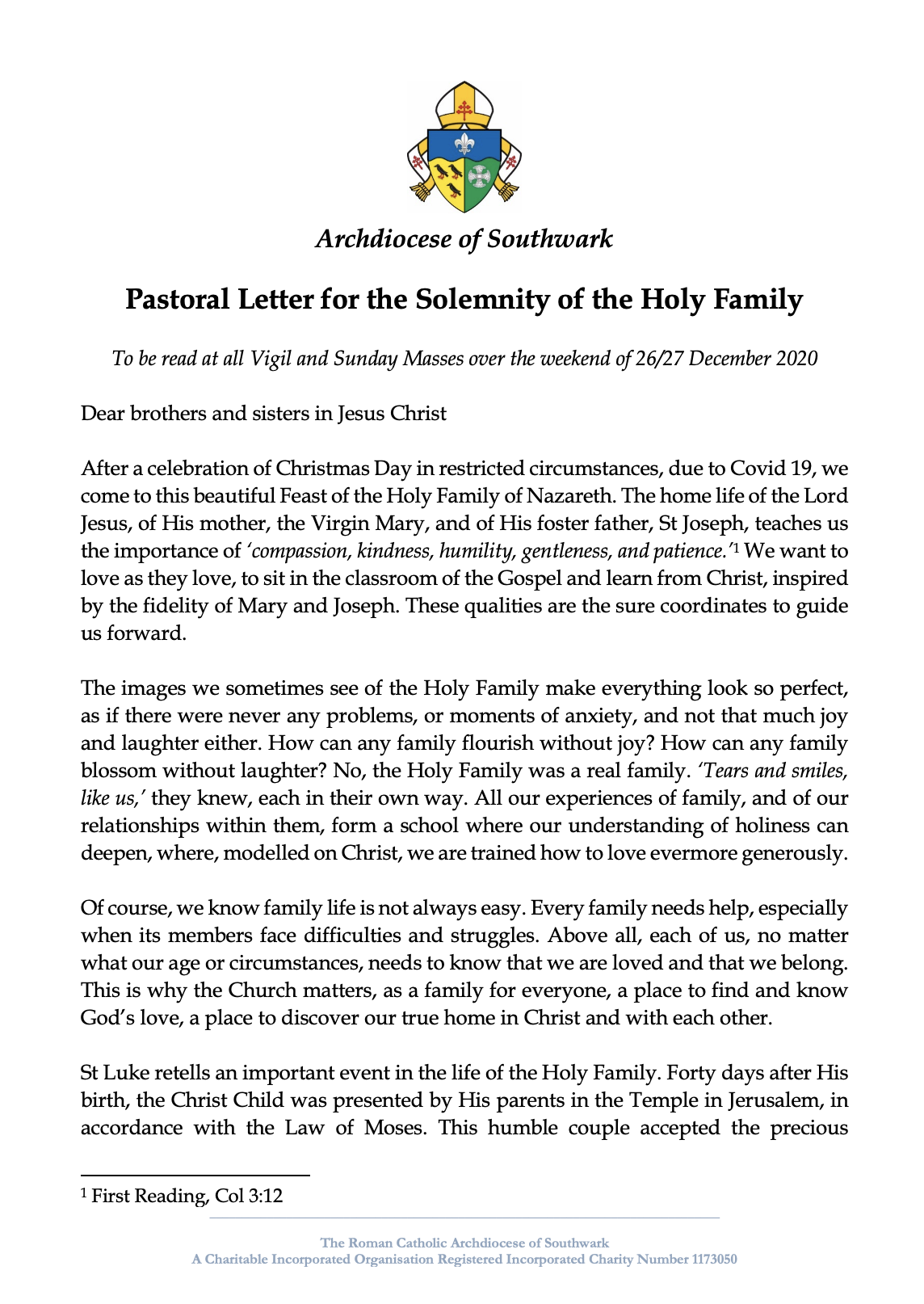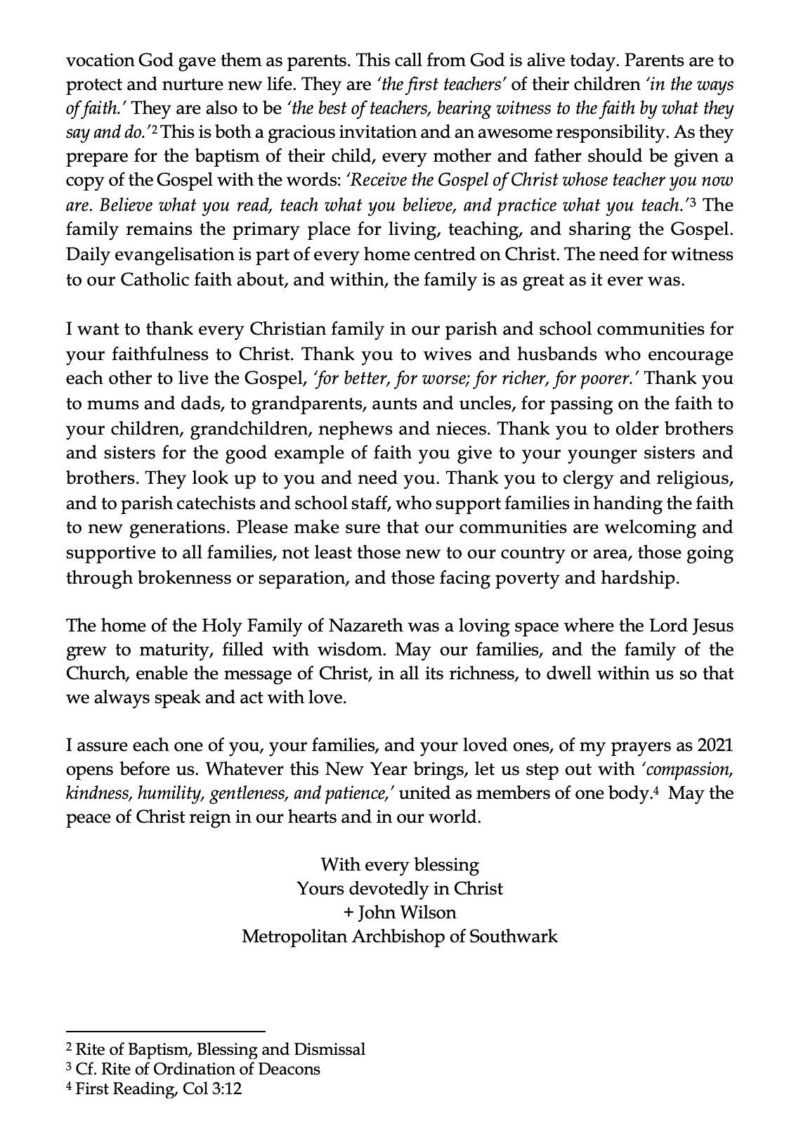 Finally, Archbishop John reminds us: “the Church regards each day in the Octave of Christmas – the 8 days from 25th December until the 1st January, as if it were ‘Christmas Day’. So, if you haven’t been able to attend mass on Christmas Eve or Christmas Day this year, why not go to mass on any of these 8 days with the same sense of joy and solemnity.”