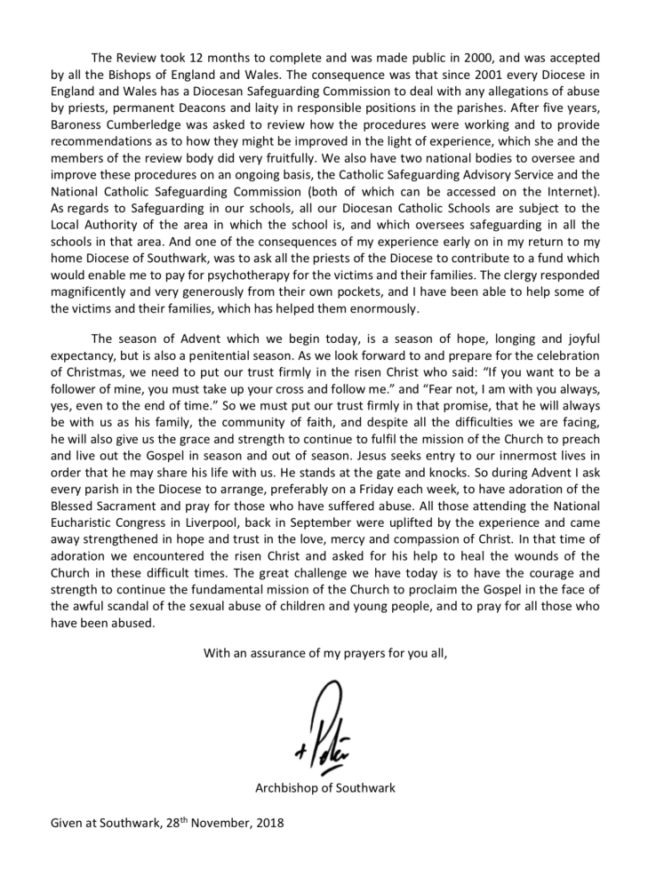 No sermon from Fr Doug this week, instead there is a pastoral letter from our Archbishop Peter Smith