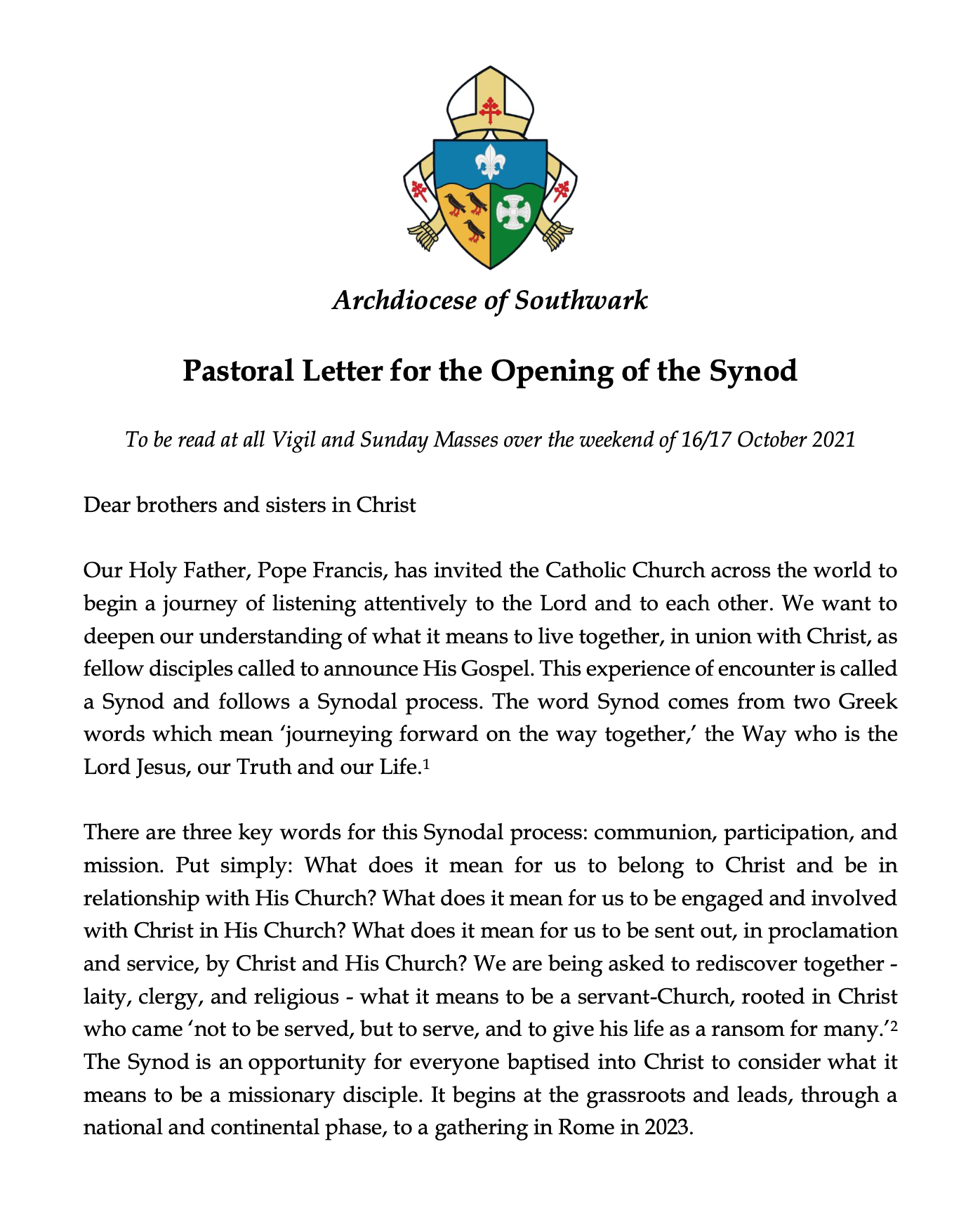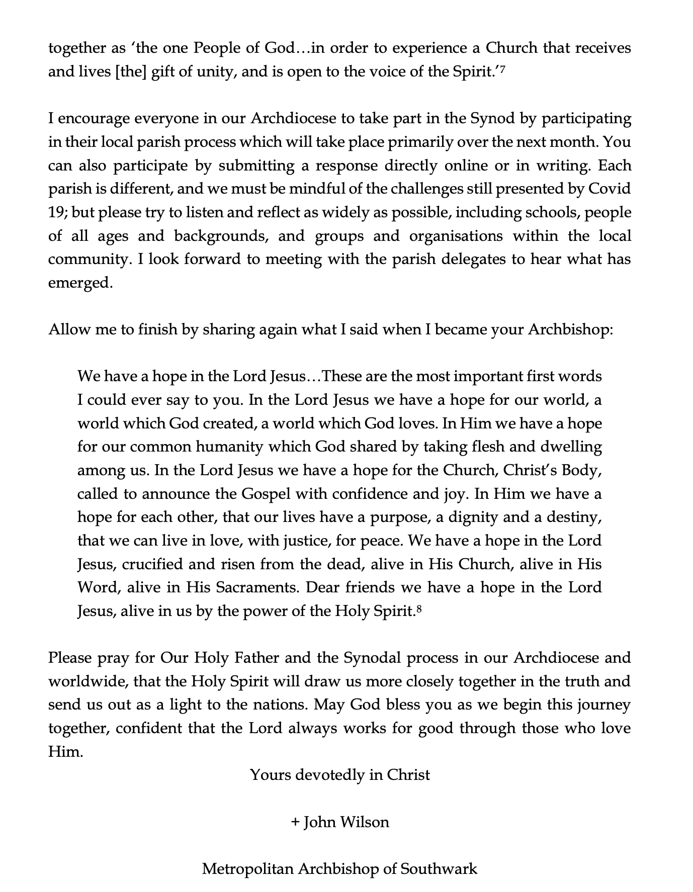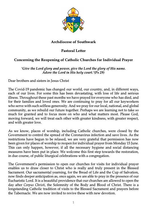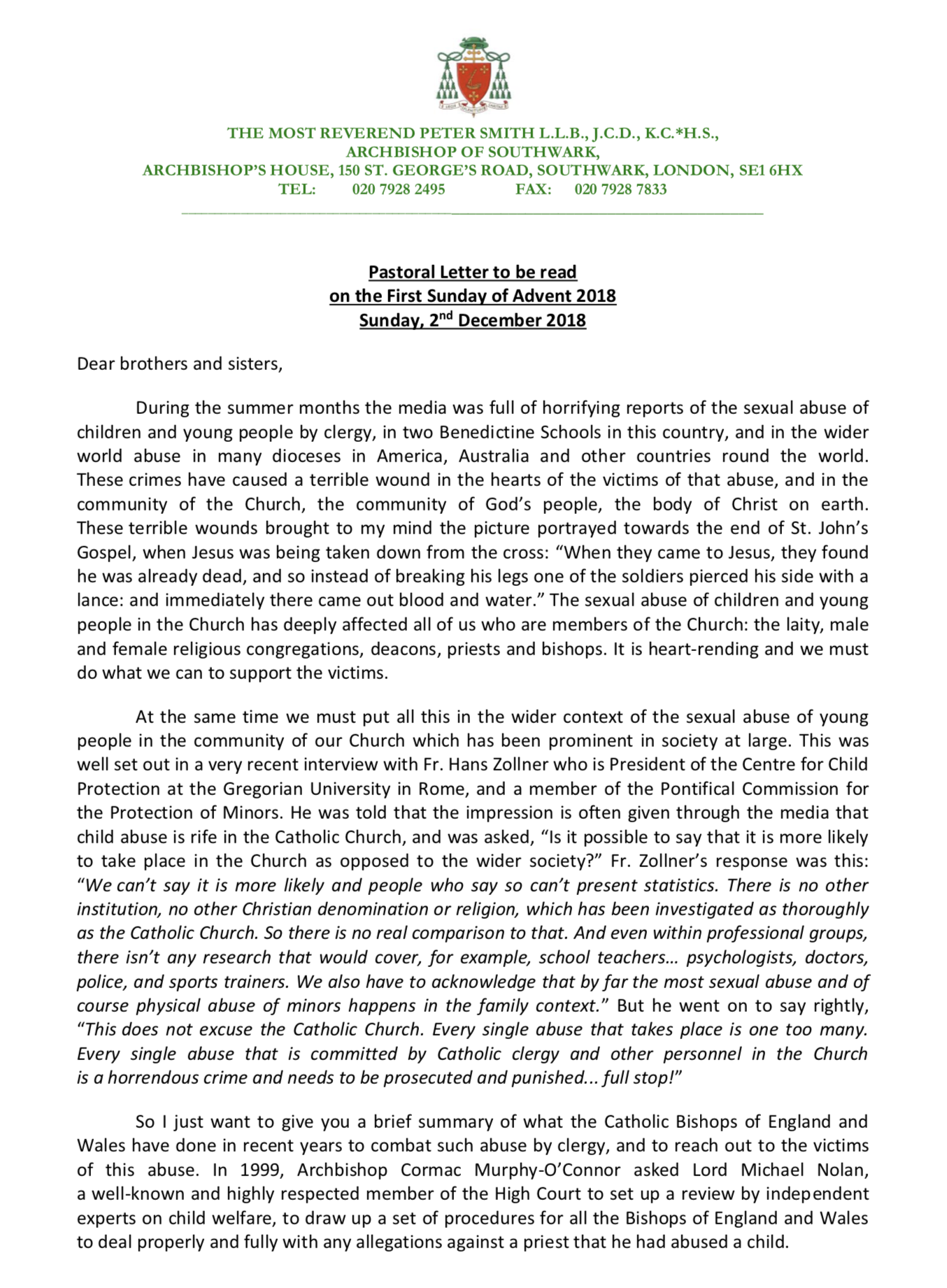No sermon from Fr Doug this week, instead there is a pastoral letter from our Archbishop Peter Smith