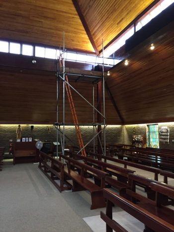 It was another week before our heating engineers were able to organise scaffolding so they could work on the pipes and install two new valves. The scaffolding went up first thing in the morning on the Friday before our Christmas carol service. By midday, Mike from K&.T Heating had finished the job and tested it while we waited for the scaffolders to return and by 1.30 everything had been cleared away.