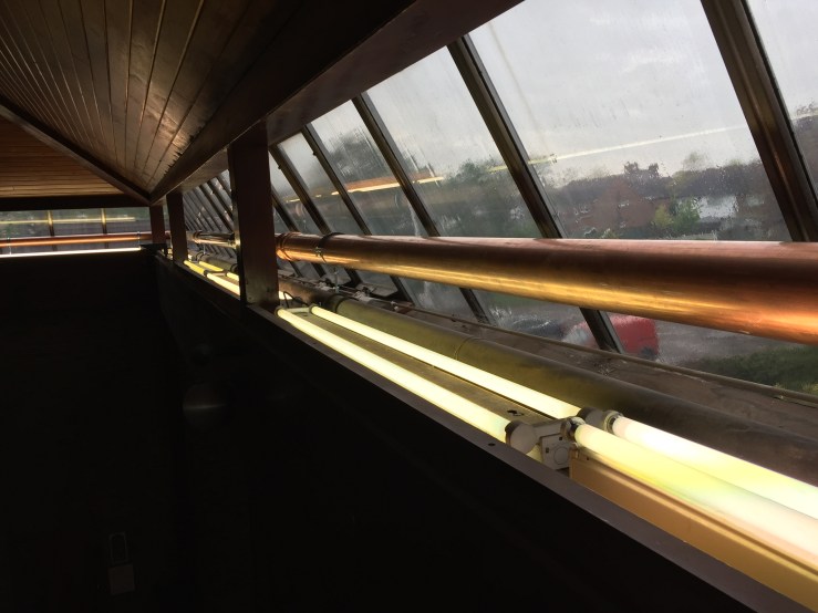 Something we wondered at first, but the whole point of the top level is to create a cushion of warm air in the roof and so prevent the heat from the lower level rising up behind the wood panelling and going straight out the windows. It also helps to stop condensation on the windows and frames and so prevent corrosion. The recent very cold snap demonstrated that the lower circuit on it’s own was not enough.