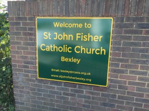 Since then the metal railings have been installed so we hope that our new sign, welcoming everyone to St John Fisher, will stand a better chance of surviving.